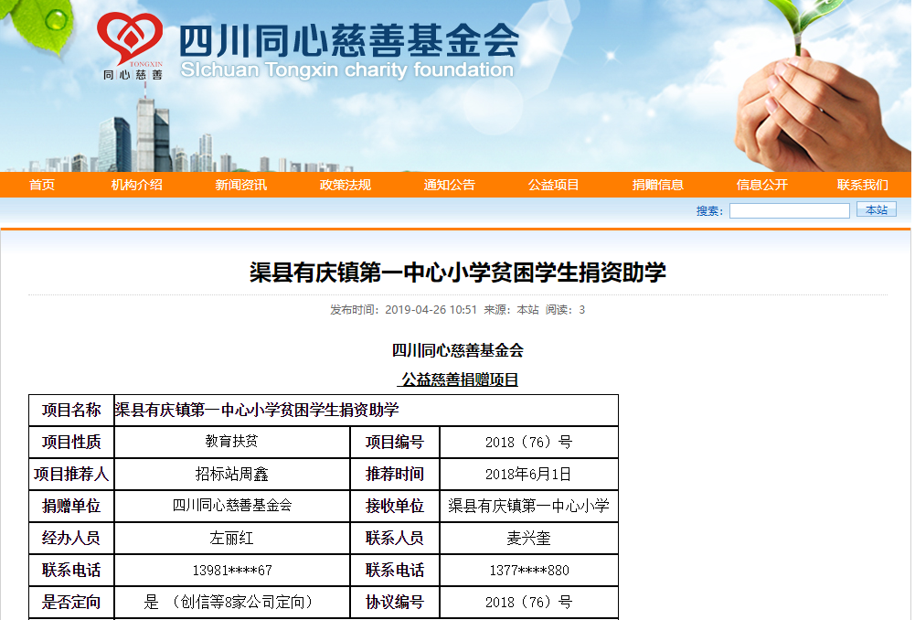 通過四川同心慈善基金會(huì)對(duì)